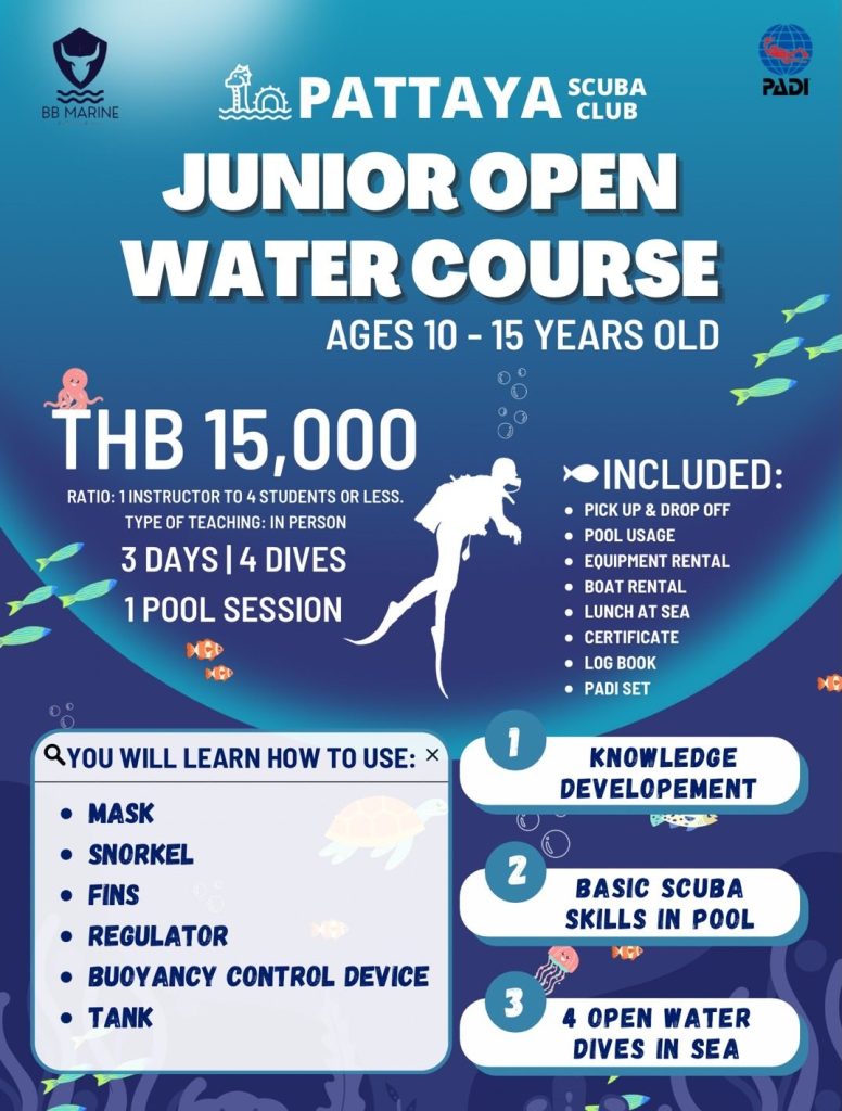 FinFriend program is designed for children and young beginners. It introduces kids to scuba equipment and basic underwater breathing skills. Children can enjoy safe diving experiences under instructor guidance. The program also builds confidence and helps them feel comfortable in the water. In addition, it encourages creativity, observation, and teamwork through fun underwater activities.